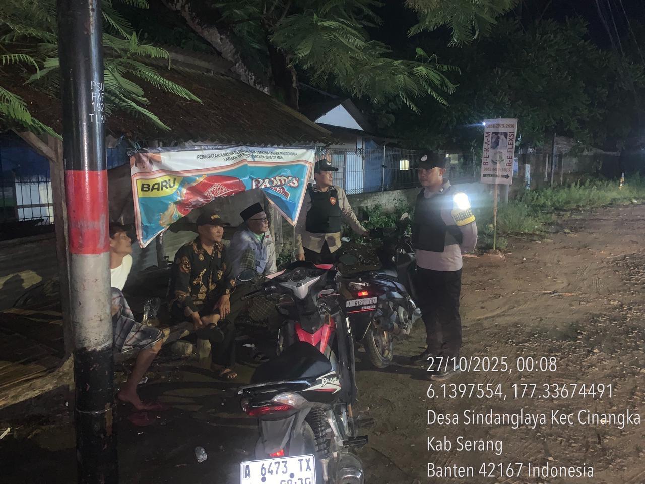 *Cilegon* – Dalam Rangka Pencegahan Kejahatan Jalanan dan Memelihara situasi keamanan dan menjaga serta memberikan rasa aman dan nyaman di masyarakat,Salah satu upaya untuk mewujudkan hal tersebut sebagaimana yang dilakukan oleh Personil Polsek Cinangka Polres Cilegon Polda Banten melaksanakan giat patroli blue light malam hari hingga menjelang pagi, Senin (27/10/2025).