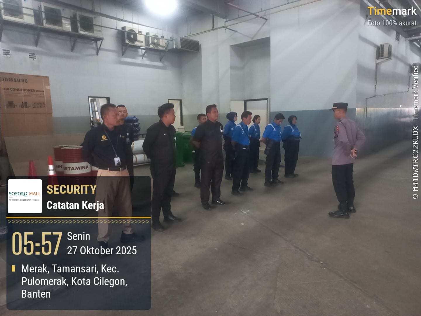 Cilegon - Personil Polsek Kskp Merak Polres Cilegon Polda Banten Laksanakan Pembinaan Scurity Guna Memelihara Harkamtibmas, Sebagai Petugas satuan pengamanan atau security merupakan bagian dari mitra dan kepanjang tanganan tugas Polri yang membantu melaksanakan pengamanan di daerah binaannya, Senin (27/10/2025).