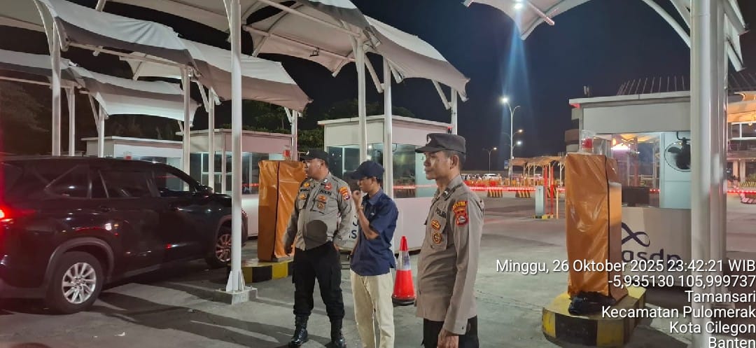 Cilegon - Personil Polsek Kskp Merak Polres Cilegon melaksanakan patroli di kawasan pelabuhan merak memberikan rasa aman dan damai, Senin (27/10/2025)