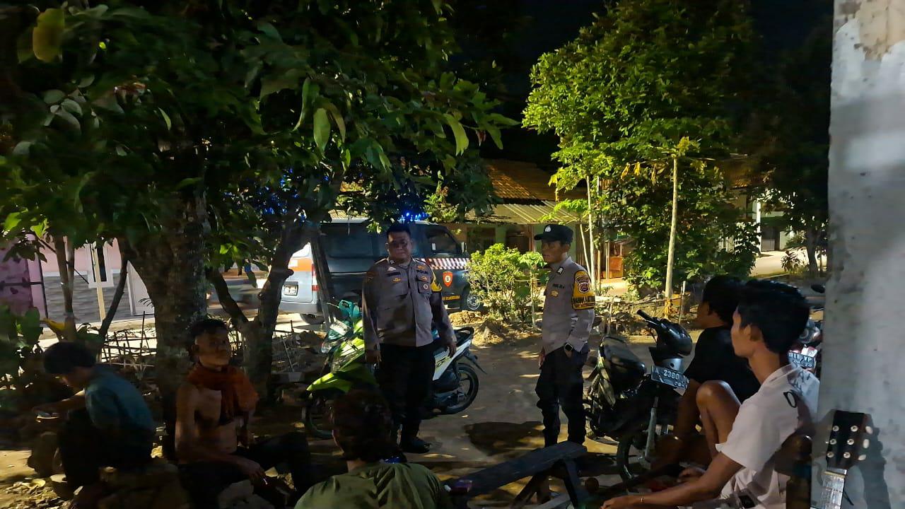 Upaya Jaga Kamtibmas Di Wilayah Hukumnya, Bripka Tri dan Brigadir Andri Bhabinkamtibmas Patroli Sambang Malam Hari