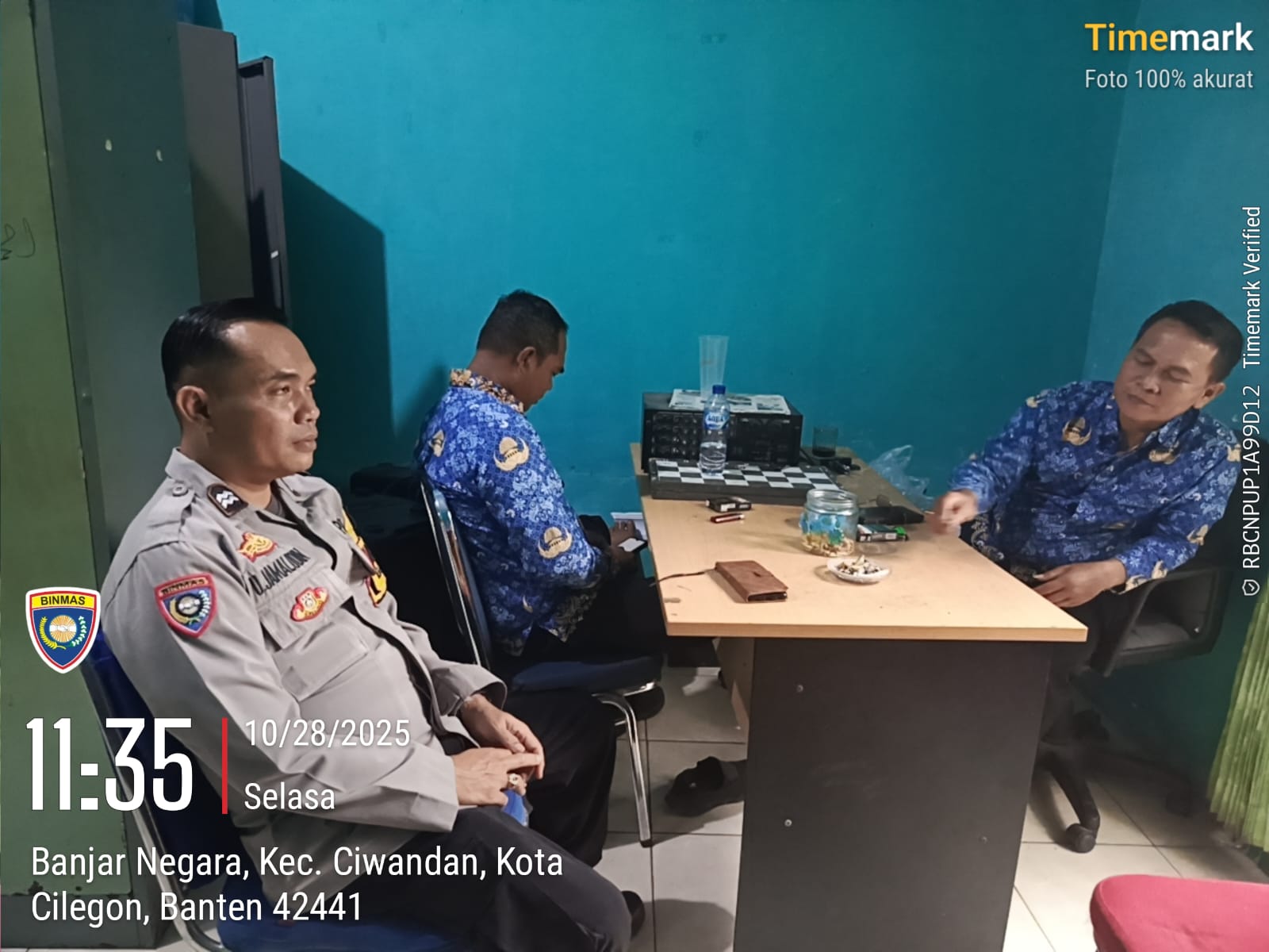 Cilegon - Dalam upaya memberikan rasa aman kepada masyarakat Bhabinkamtibmas Polsek Ciwandan Polres Cilegon Polda Banten melakukan upaya dalam mencegah gangguan kamtibmas,seperti melaksanakan giat sambang di kantor-kantor kelurahan  bertemu langsung dengan perangkat kelurahan, Selasa (28/10/2025).