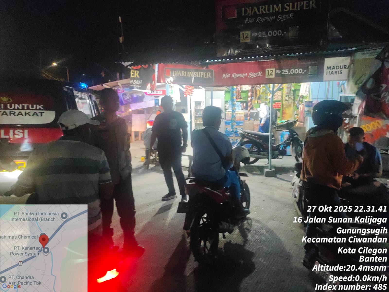 Cilegon - Personil Polsek Ciwandan Polres Cilegon Polda Banten Selalu Melaksanaan Kegiatan KRYD (Kegiatan Rutin Yang Ditingkatkan) Patroli Rutin malam hari di daerah hukum Polsek Ciwandan Guna Persempit Ruang Pelaku Tindak Kejahatan, Selasa (28/10/2025).
