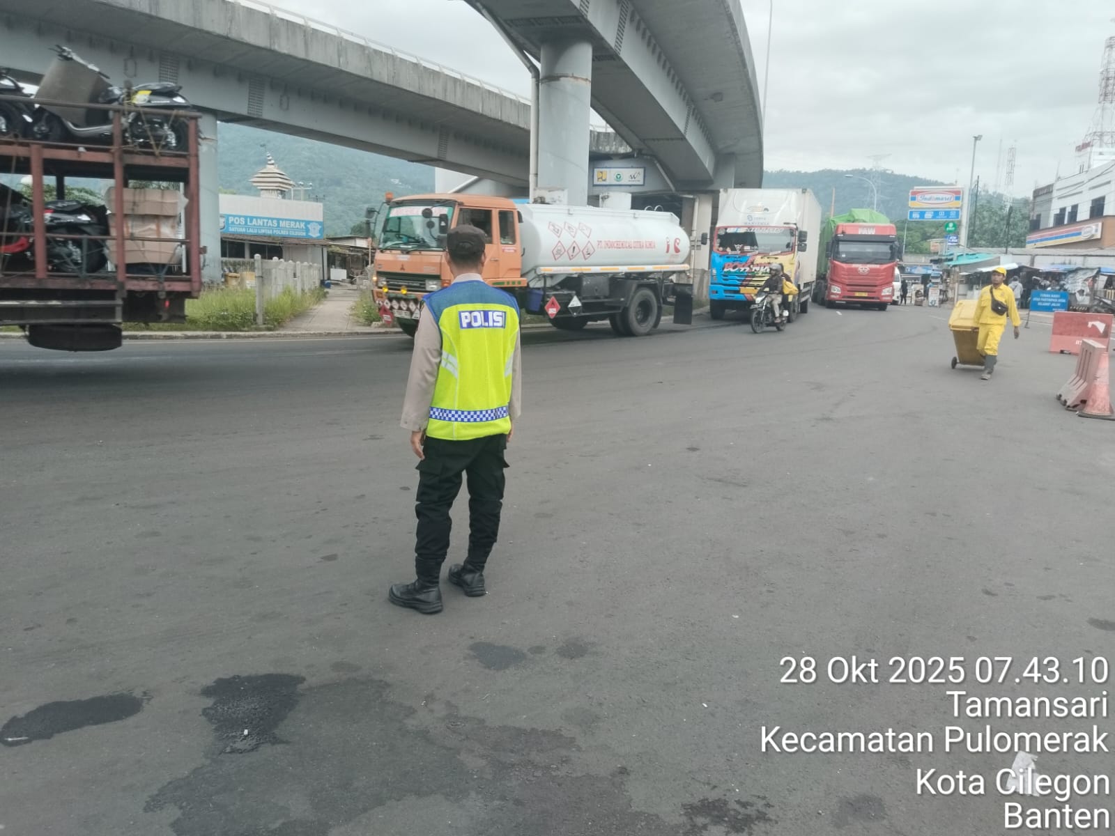 Polsek KSKP Merak Gelar Pengaturan Antrian Mobil di Pelabuhan Merak Demi Pelayanan Prima
