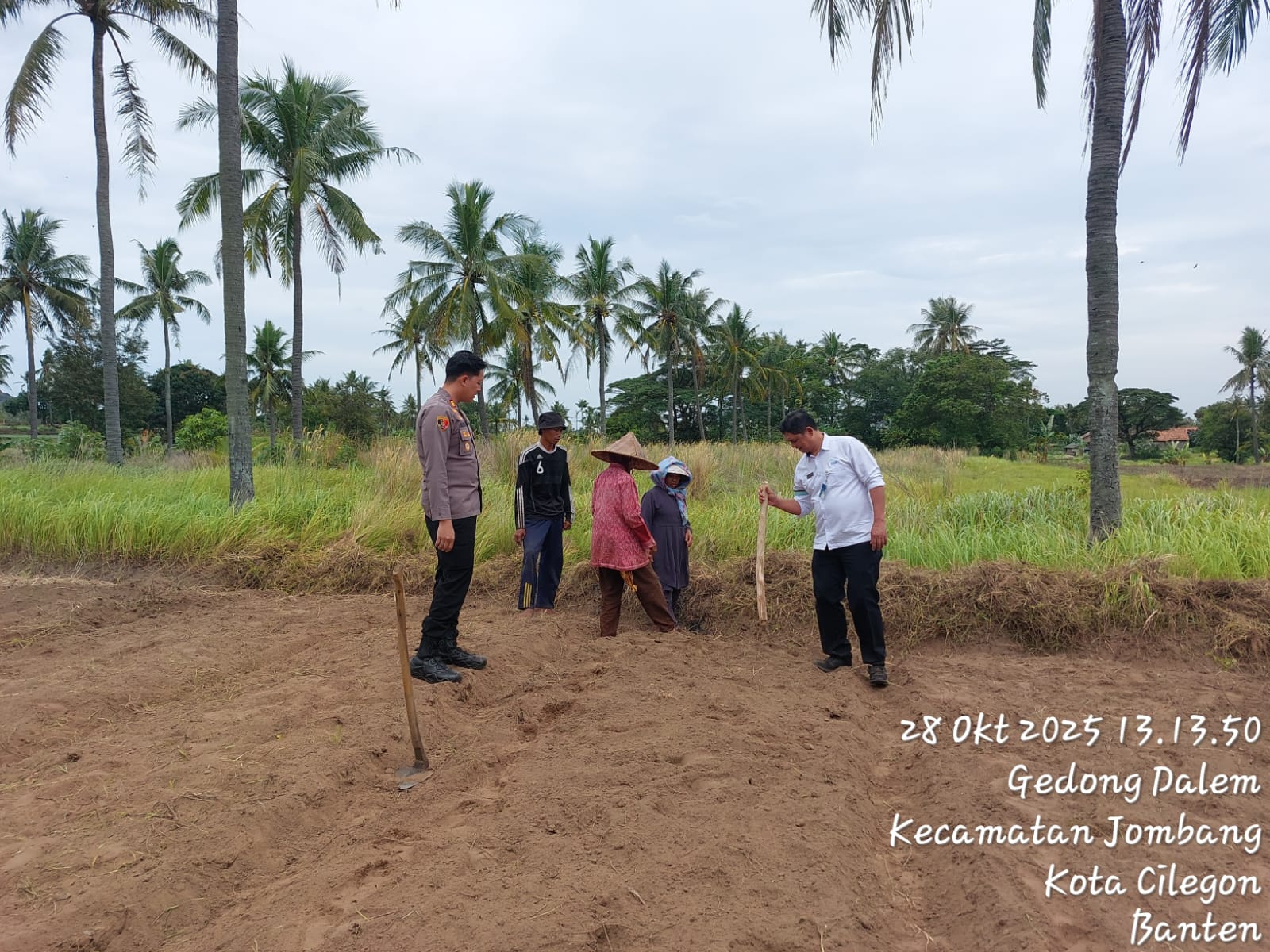 Cilegon - Melaksanakan program pemerintah, penanaman jagung dalam program ketahanan pangan, personil Polsek Kp Merak Polres Cilegon Polda Banten melaksanakan kegiatan peninjauan serta monitoring lokasi yang nantinya akan ditanami bibit jagung unggul di Desa Mangkunegara Kecamatan Bojonegara, Kabupaten Serang, Selasa (28/10/2025).