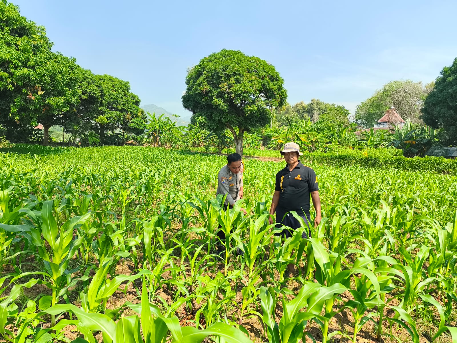 Pantau lahan jagung kelompok tani Sinarjaya Kec. Puloampel Merak Banten oleh Bhabinkamtibmas Polsek Puloampel.
