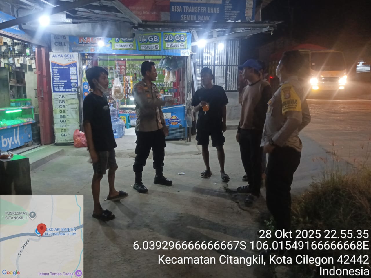 Cilegon - Guna Menjaga situasi Kamtibmas supaya tetap aman dan kondusif,Personil Polsek Ciwandan senantiasa melaksanakan pembinaan dan himbauan dengan cara dialogis kamtibmas untuk menyapa warga masyarakat dengan memberikan pesan kamtibmas saat berkunjung di beberapa lokasi yang berada di daerah hukum Polsek Ciwandan Polres Cilegon Polda Banten, Rabu (29/10/2025).