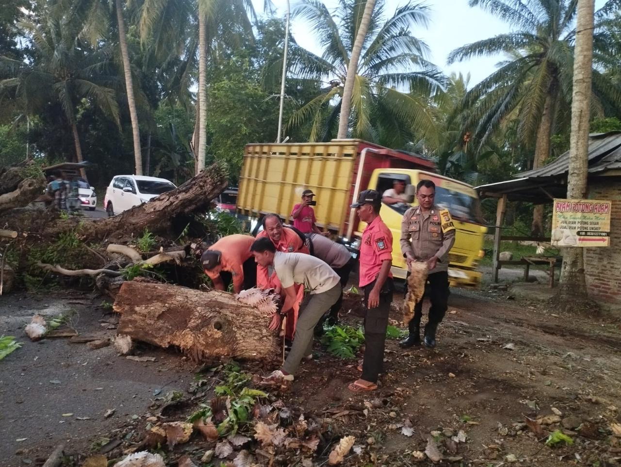 Kapolres Cilegon Polda Banten AKBP Martua Raja Taripar Laut Silitonga Melalui Kapolsek Cinangka Polres Cilegon Polda Banten IPTU Rusnata Mengatakan di Jl Raya Cinangka Palka tepatnya di Kp.Lebaksawo Ds. Sindanglaya Kec. Cinangka Kab. Serang telah terjadi pohon tumbang yang terjadi angin kencang serta pohon yang sudah tua Tidak ada jiwa korban dalam kejadian tersebut, namun berdampak pada arus lalulintas dan menimbulkan antrian kendaraan dari arah Cilegon menuju Cinangka maupun sebaliknya