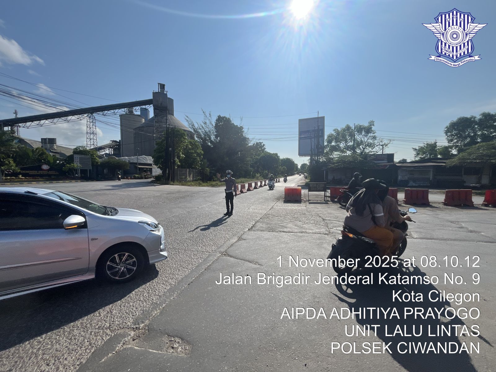 Personil Polsek Ciwandan melakukan pengaturan lalu lintas di depan Pos Lantas JLS Ciwandan dan peneguran terhadap pelanggaran kasat mata. Kegiatan ini dilaksanakan untuk memastikan keamanan dan kelancaran arus lalu lintas di wilayah hukum Polsek Ciwandan.