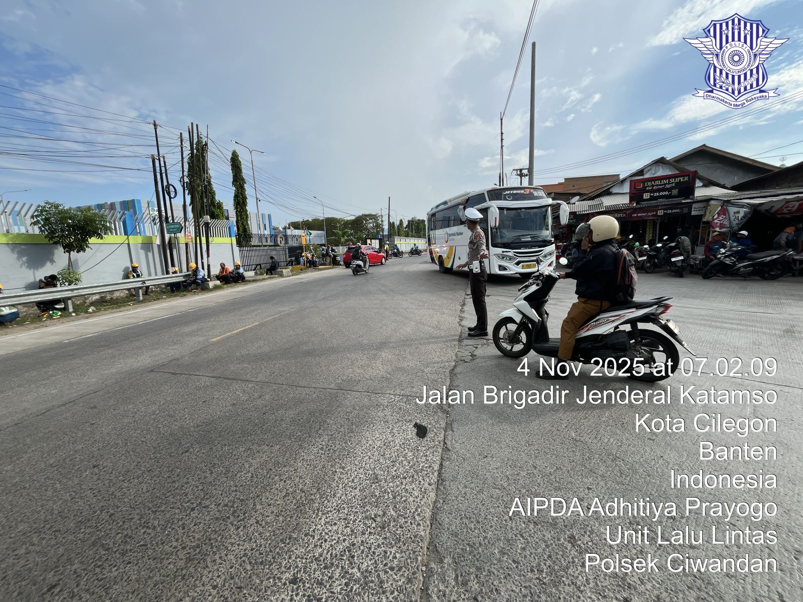 Cilegon – Berikan Pelayanan Pagi Kepada Masyarakat Personil Polsek Ciwandan Polres Cilegon Polda Banten melaksanakan pengaturan di titik kepadatan Arus Lalu-lintas Yang Ada Di daerah Hukum Polsek Ciwandan, Selasa (04/11/2025).