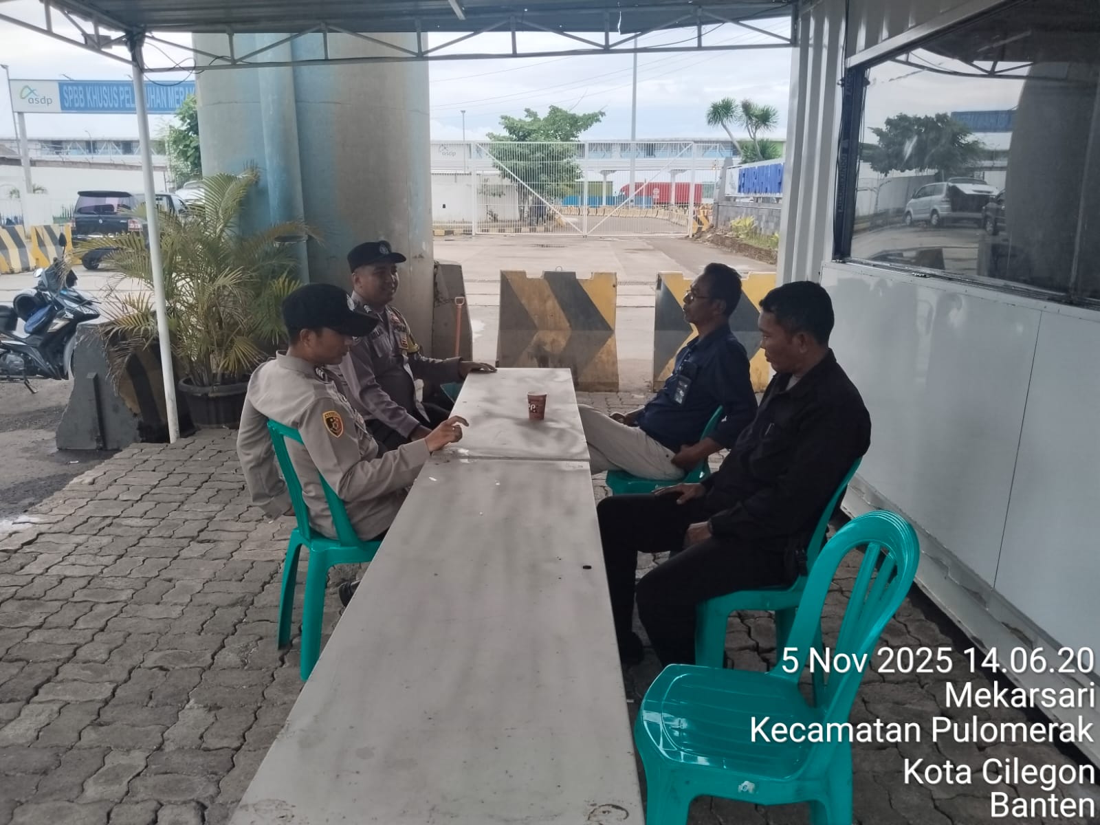 Cilegon - Personel Polsek Kskp Merak Polres Cilegon Polda Banten melaksanakan sambang dan patroli kawasan pelabuhan merak dalam rangka menjaga Harkamtibmas di Kawasan Pelabuhan Merak, Rabu (05/11/2025).