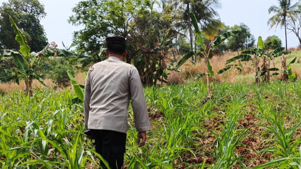 Kapolsek Pulomerak Tetap semangat cek lahan jagung guna dukung Ketahanan Pangan nasional