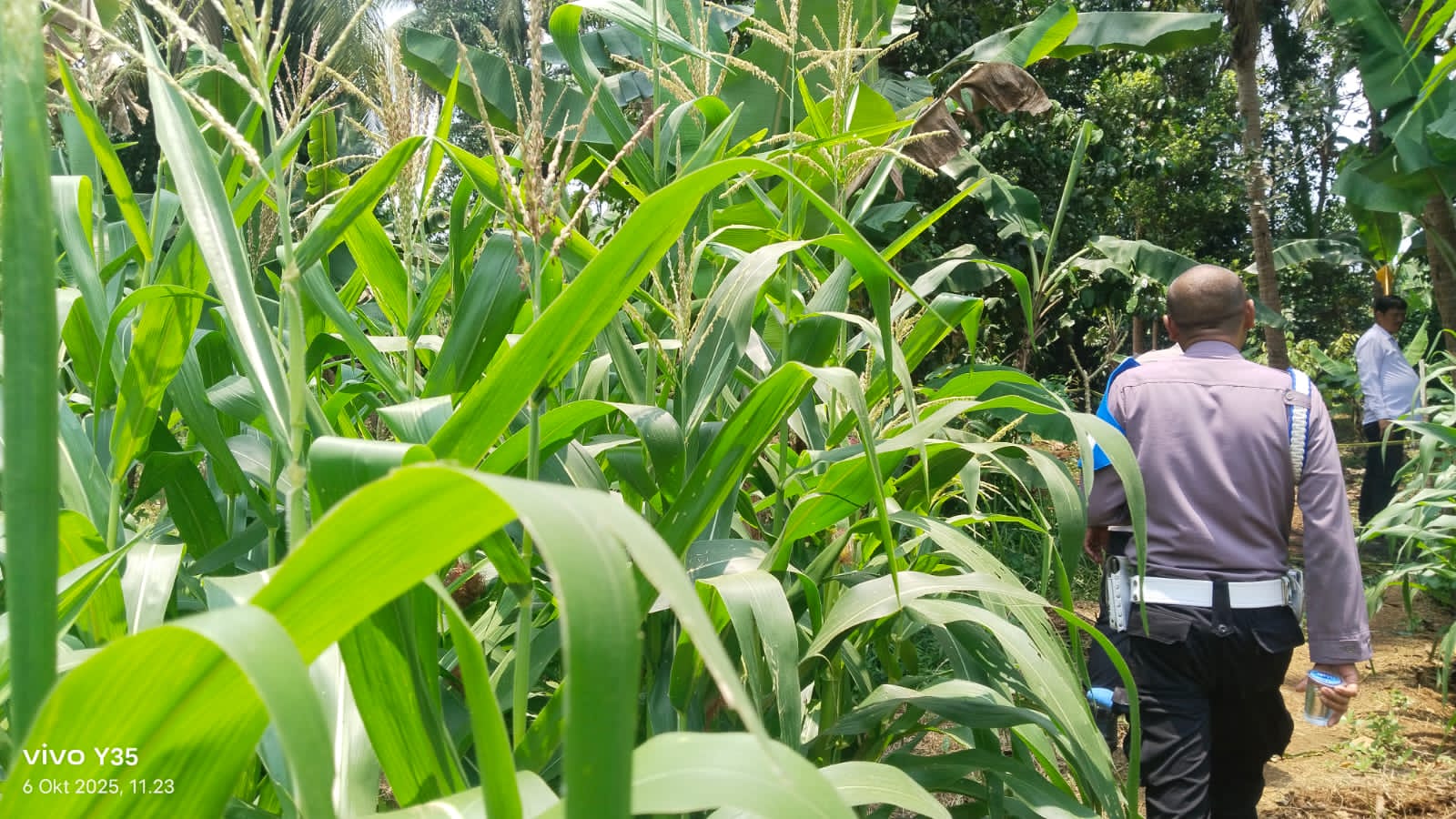 Penanaman Jagung serentak Kuartal IV Seluruh Indonesia di lahan milik kelompok tani Bpk. Maman Rt. 01/01 Kp. Macute Kel. Angsana Kec. Mancak-Serang daerah hukum Polres Cilegon.