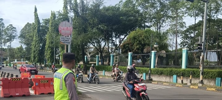 melaksanakan pengaturan lalu lintas pagi di simpang lampu merah ADB