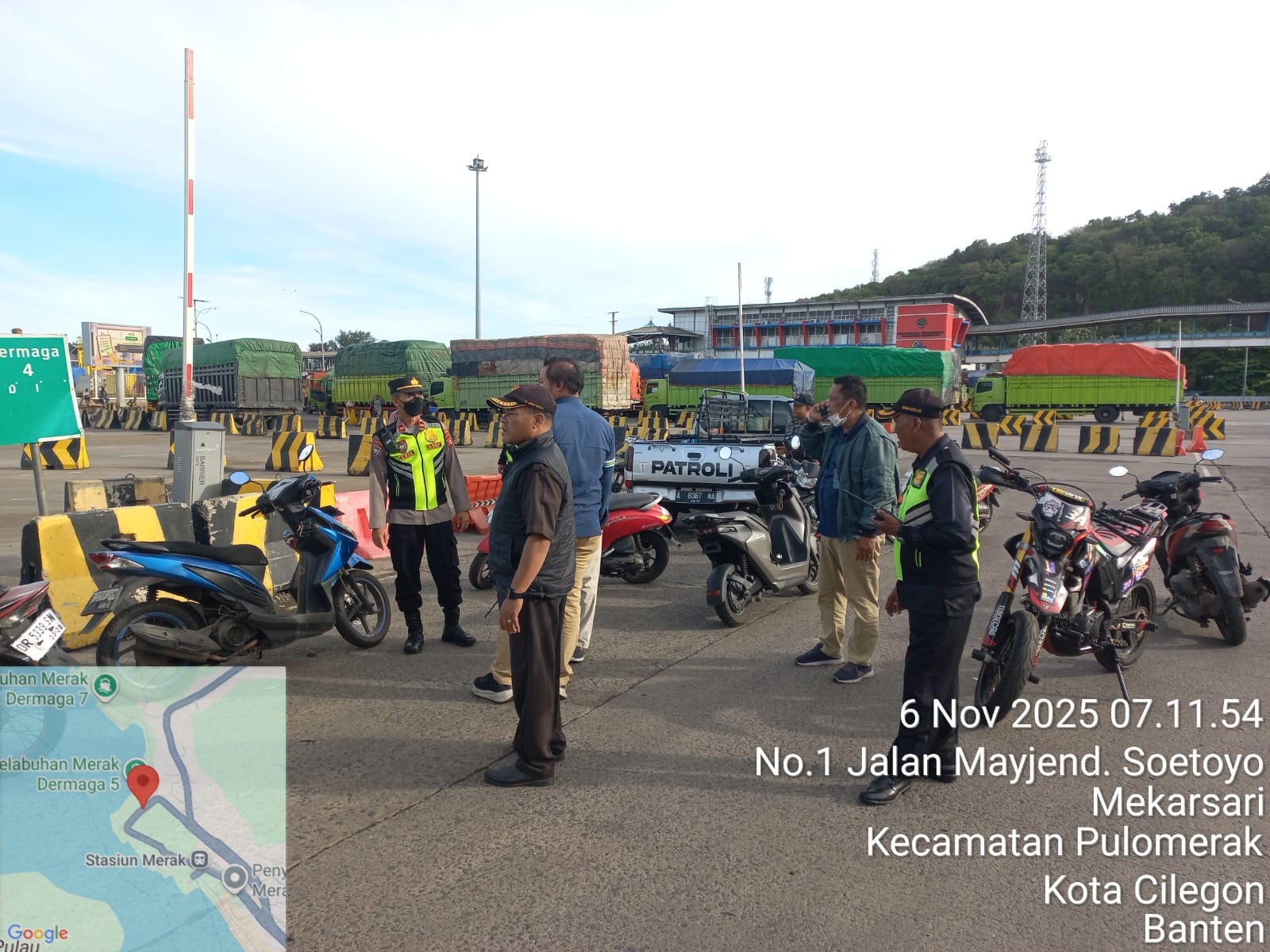 Cilegon - Personel Polsek Kskp Merak Polres Cilegon Polda Banten melaksanakan sambang dan patroli kawasan pelabuhan merak dalam rangka menjaga Harkamtibmas di Kawasan Pelabuhan Merak, Kamis (06/11/2025).