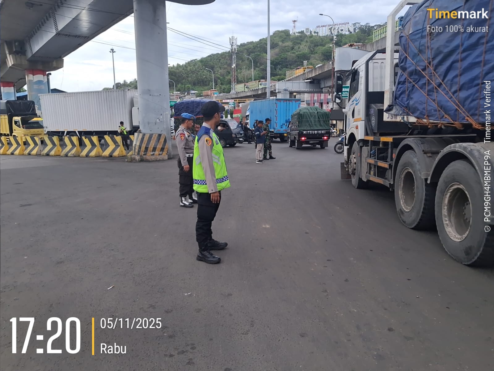 Wujud Pelayanan Prima, KSKP Merak Polres Cilegon Atur Antrian Kendaraan R4 di Pelabuhan