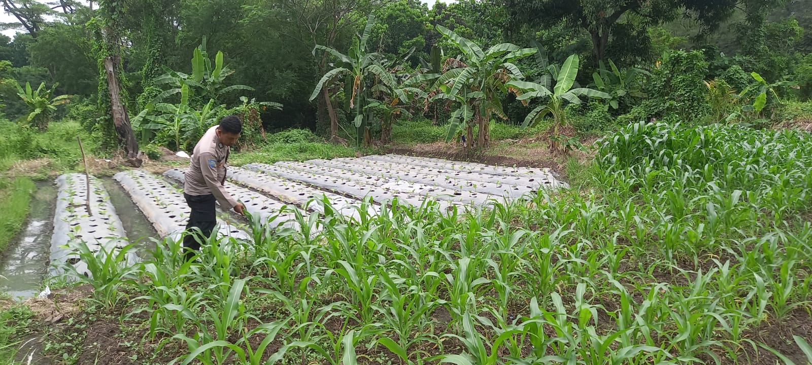 -POLRES CILEGON–Polda Banten. Bhabinkamtibmas Kelurahan Kotabumi, Bripka Agustoni, melaksanakan pengecekan tanaman jagung di Jalan Kubang Lampung, Komplek Perumahan KS, Kecamatan Purwakarta, Kota Cilegon. Kegiatan ini merupakan bagian dari upaya mendukung program ketahanan pangan di wilayah tersebut.Jumat.(07-11-2025).
