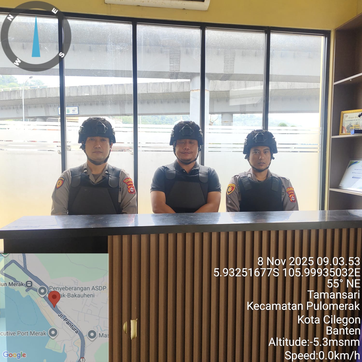 Cilegon - Personel piket jaga Polsek Kskp Merak Polres Cilgon Polda Banten melaksanakan siaga 1 Polsek pelaksanaan Sispam Mako oleh piket siaga dipimpin oleh Kspk Polsek Kskpy Merak Polres Cilegon Polda Banten, Sabtu (08/11/2025).