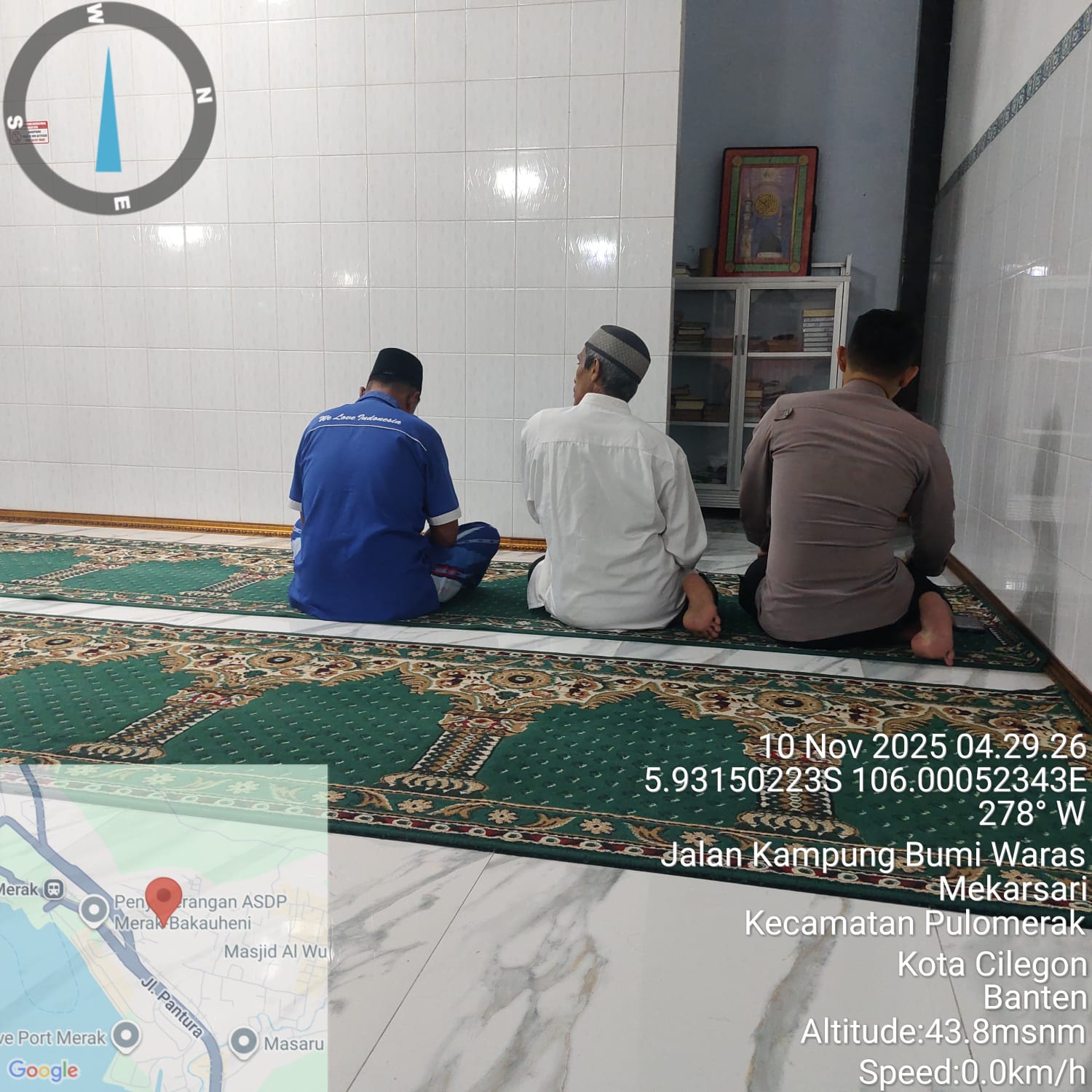 Cilegon – Personil Kskp Merak Polres Cilegon Polda Banten menggelar kegiatan Pembinaan Rohani dengan shalat subuh keliling di Masjid Yang ada Di Daerah hukum Polsek Kp Merak Polres Cilegon Polda Banten, Senin (10/11/2025).