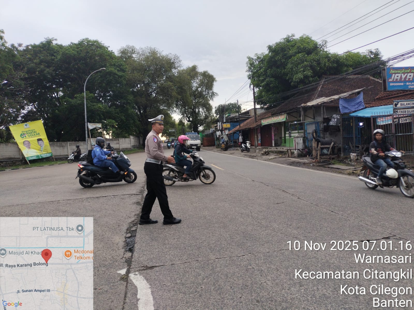 Cilegon - Tingginya mobilitas masyarakat pada jam-jam sibuk, tingkat kerawanan baik itu kemacetan ataupun kecelakaan pasti ada potensi, sehingga untuk mengantisipasi hal tersebut Personil Polsek Ciwandan Polres Cilegon Polda Banten Bhabinkamtibmas melaksanakan Strong Point pada sejumlah lokasi, Kamis (10/11/2025).