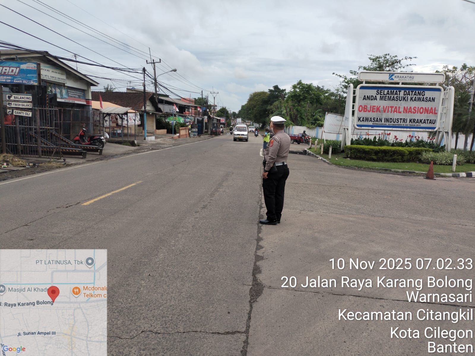 Cilegon - Tingginya mobilitas masyarakat pada jam-jam sibuk, tingkat kerawanan baik itu kemacetan ataupun kecelakaan pasti ada potensi, sehingga untuk mengantisipasi hal tersebut Personil Polsek Ciwandan Polres Cilegon Polda Banten Bhabinkamtibmas melaksanakan Strong Point pada sejumlah lokasi, Kamis (10/11/2025).