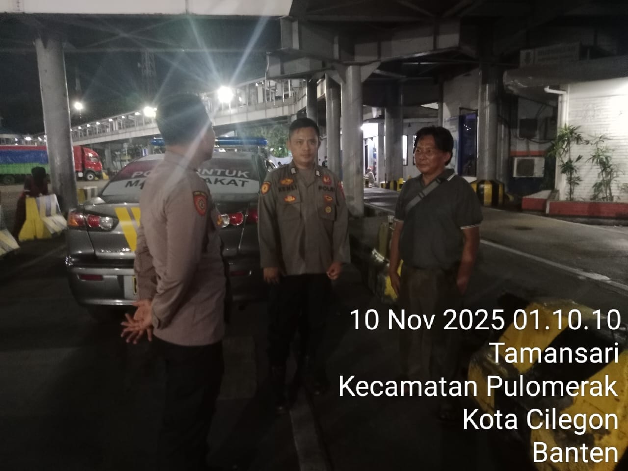 Cilegon - Personil Polsek Kskp Merak Polres Cilegon melaksanakan patroli di kawasan pelabuhan merak memberikan rasa aman dan damai, Senin (10/11/2025)