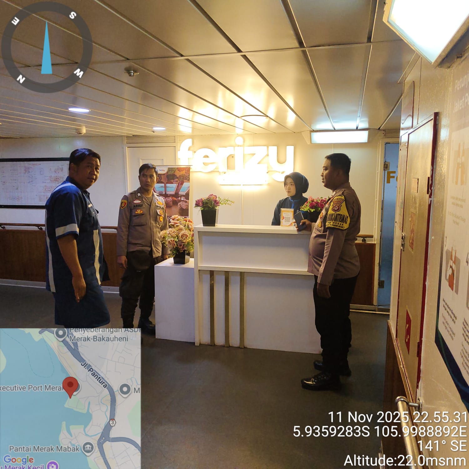 Cilegon - Personil Polsek Kskp Merak Polres Cilegon melaksanakan patroli di kawasan pelabuhan merak memberikan rasa aman dan damai, Rabu (12/11/2025)