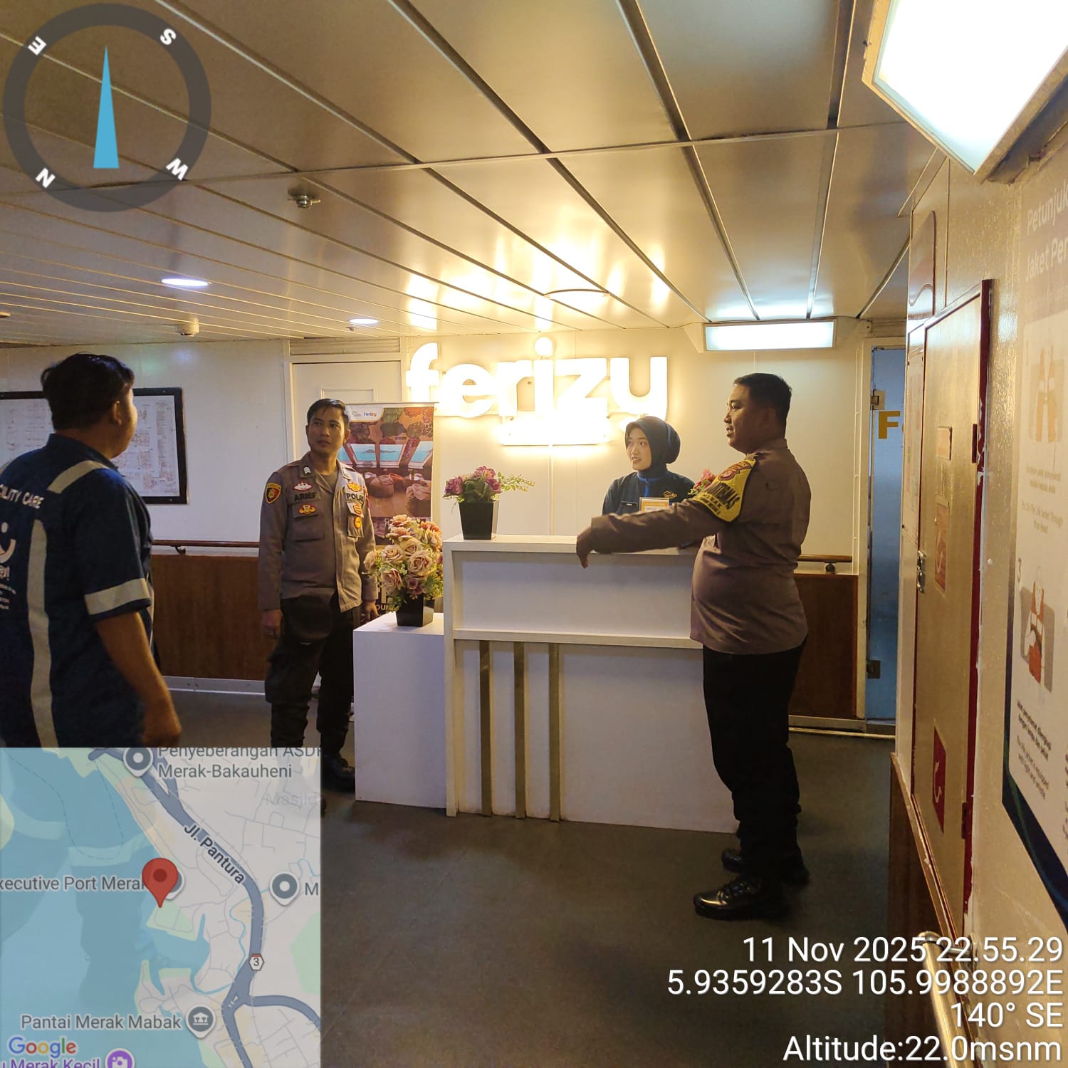 Cilegon - Personil Polsek Kskp Merak Polres Cilegon melaksanakan patroli di kawasan pelabuhan merak memberikan rasa aman dan damai, Rabu (12/11/2025)