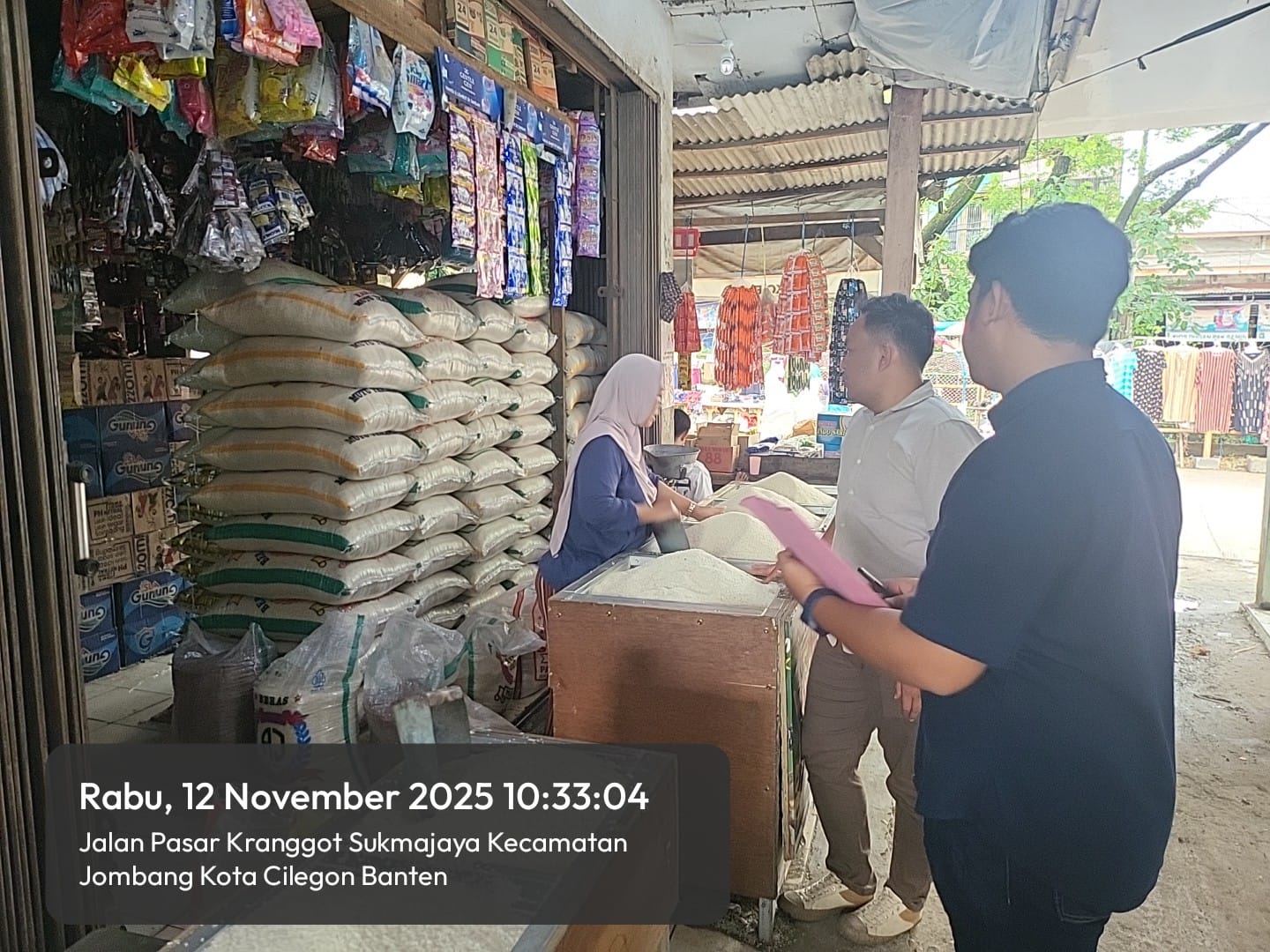 Cilegon – Unit II Satreskrim Polres Cilegon Polda Banten melakukan pengecekan terhadap persediaan dan harga bahan pangan di Pasar Kelapa, Cilegon, di tahun 2025. Rabu tanggal 12 November 2025.