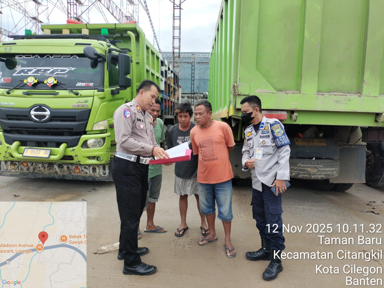 Cilegon - Kanit Lantas Polsek Ciwandan AKP Haris Munandar melaksanakan Himbauan SK Gubernur Dan monitoring stokfile pasir Didaerah hukum Polsek Ciwandan, Rabu (12/11/2025).