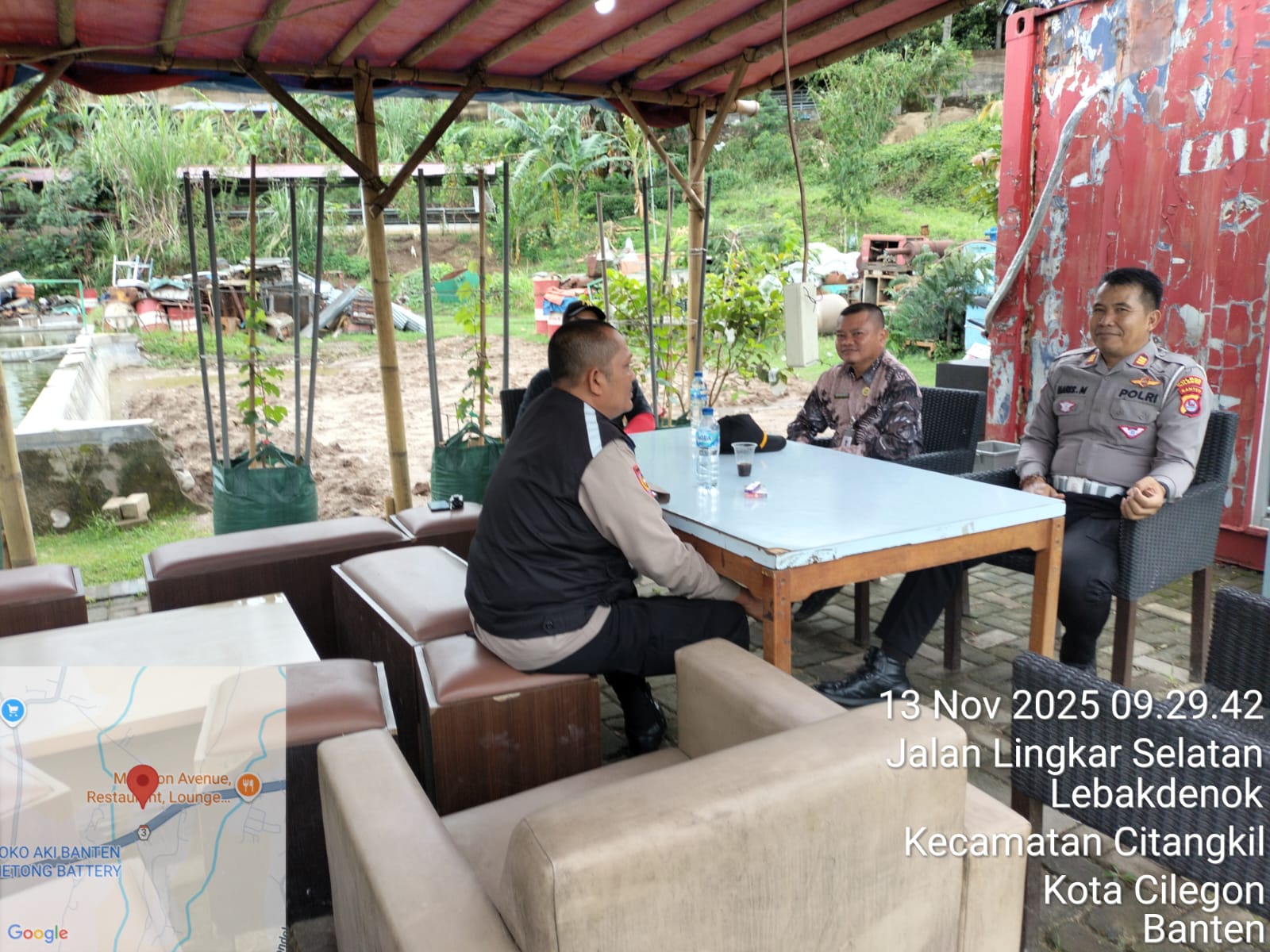 Cilegon - Kanit Lantas Polsek Ciwandan AKP Haris Munandar Bersama Bhabinkamtibmas Kelurahan Lebak Denok AIPTU Yudi Setiawan melaksanakan Himbauan SK Gubernur Dan monitoring stokfile pasir Didaerah hukum Polsek Ciwandan, Kamis (13/11/2025).