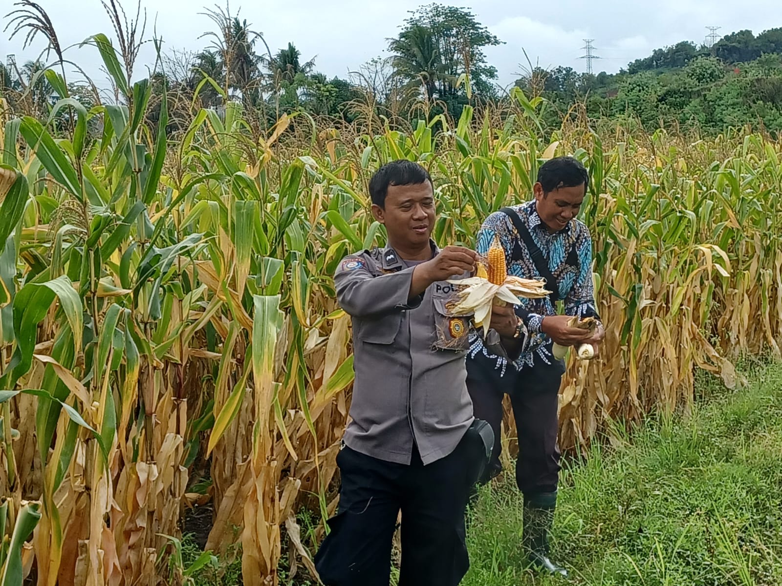 Cilegon - Polsek Ciwandan Polres Cilegon Polda Banten mendukung kegiatan panen jagung Hibrida hasil penanaman Poktan Blumbang Tani di Kelurahan Tegal Ratu, Kecamatan Ciwandan, Kota Cilegon, Kamis (13/11/2025)
