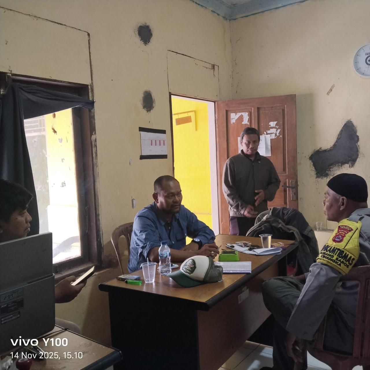 *CILEGON* dalam Rangka Mengantisipasi Gktm di wilayah Personil Bhabinkamtibmas Cinangka melakukan patroli Dialogis dengan Kepala Desa dan warga dan Menanyakan situasi Kamtibmas di wilayah dalam Rangka Menjaga Harkamtibmas di Desa Binaannya Kecamatan Cinangka Kab. Serang. Jumat.(14/11/2025).