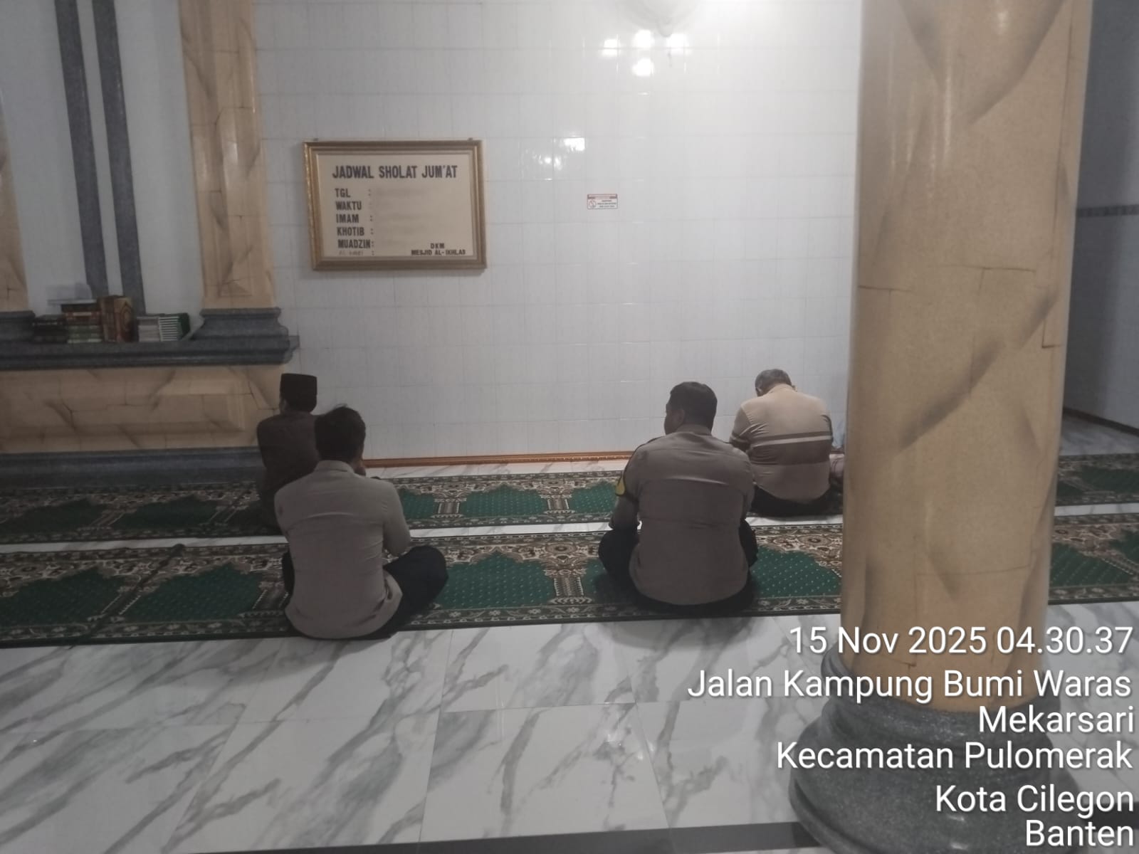 Cilegon - Personil Kskp Merak Polres Cilegon Polda Banten menggelar kegiatan Pembinaan Rohani dengan shalat subuh keliling di Masjid Yang ada Di Daerah hukum Polsek Kp Merak Polres Cilegon Polda Banten, Sabtu (15/11/2025).