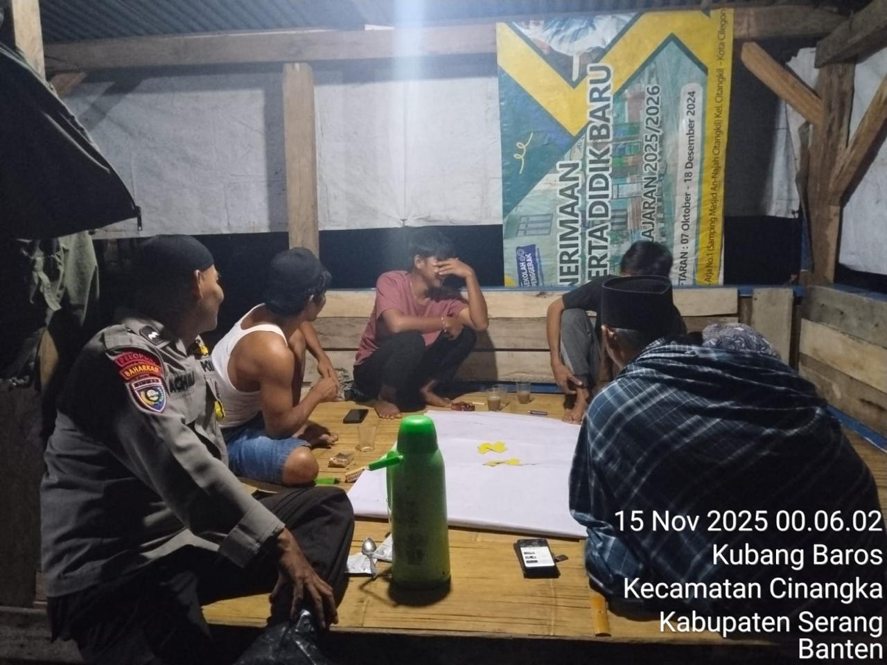 *Polres Cilegon* || Personel Bhabinkamtibmas Polsek Cinangka melaksanakan Program Komandan Wish Kapolda Banten RONDA SATKAMLING menyampaikan komunikasi dengan Petugas Siskamling agar berperan aktif dalam menciptakan Harkamtibmas yang aman dan Kondusif, Minggu (16/11/2025).