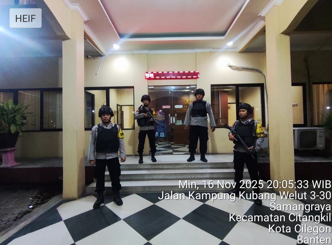Personil Polsek Ciwandan Jaga Mako Dengan Sistem Pengamanan Yang Ketat