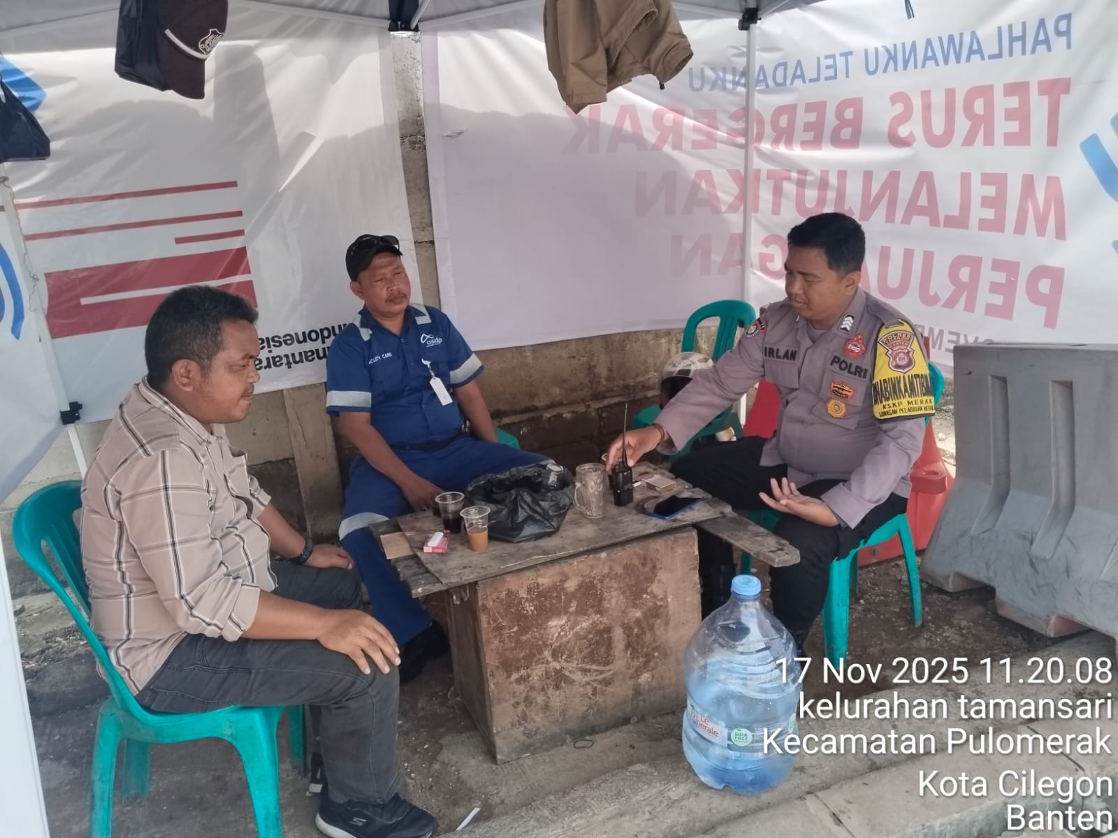 Cilegon - Personel Polsek Kskp Merak Polres Cilegon Polda Banten melaksanakan sambang dan patroli kawasan pelabuhan merak dalam rangka menjaga Harkamtibmas di Kawasan Pelabuhan Merak, Senin (17/11/2025).