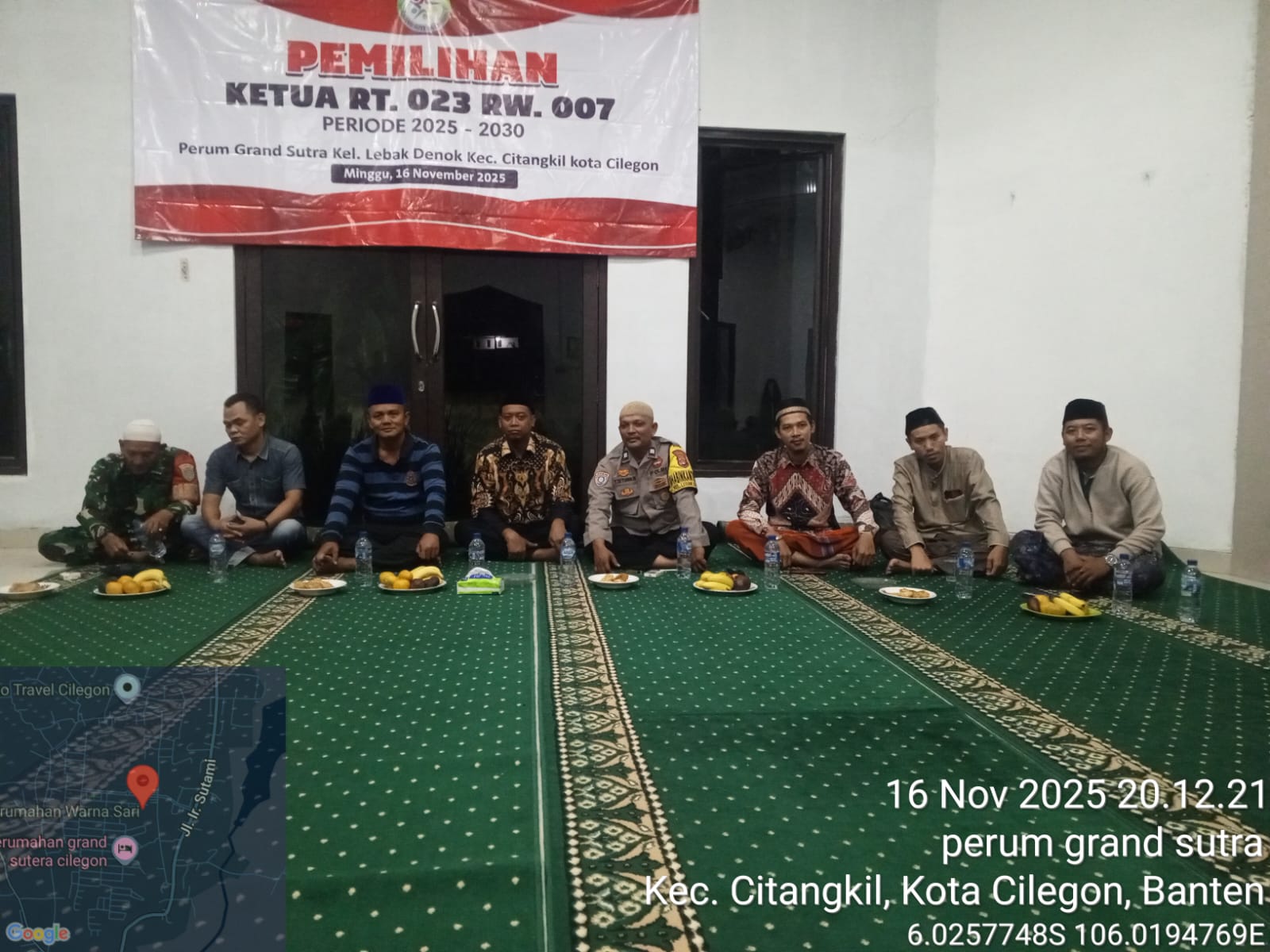 Cilegon -  Bhabinkamtibmas Kelurahan Lebak Denok Polsek Ciwandan Polres Cilegon Polda Banten AIPTU Yudi Setiawan menghadiri pemilihan Ketua RT Lingkungan Perumahan Grand Sutera kelurahan Lebak Denok Kecamatan Citangkil Kota Cilegon, Senin (17/11/2025).