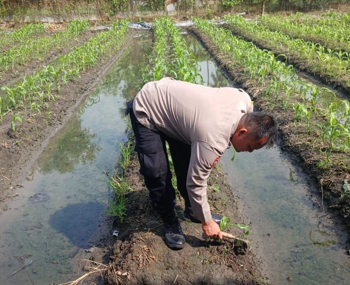 -POLRES CILEGON-Polda Banten. Bhabinkamtibmas Kelurahan Kebon Dalem, Aiptu Daryo Efendi, aktif melakukan pendampingan dan membantu perawatan tanaman jagung di lingkungan Bebulak Timur, Kelurahan Kebon Dalem, Kecamatan Purwakarta, Kota Cilegon. Kegiatan ini merupakan bagian dari upaya menjalin kedekatan dengan masyarakat serta mendukung program ketahanan pangan di wilayah binaannya.Rabu.(19-11-2025).