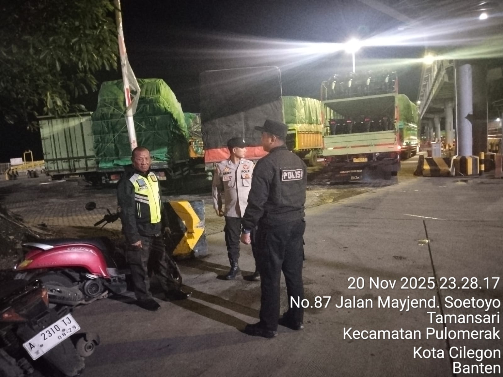 Cilegon - Personil Polsek Kskp Merak Polres Cilegon melaksanakan patroli di kawasan pelabuhan merak memberikan rasa aman dan damai, Jumat (21/11/2025)