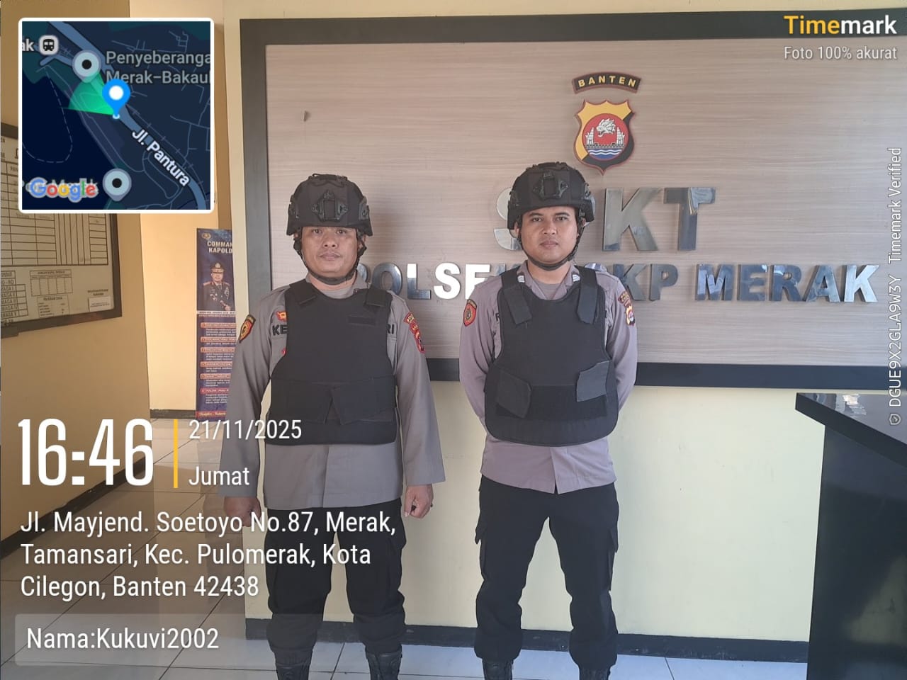Cilegon - Personel piket jaga Polsek Kskp Merak Polres Cilgon Polda Banten melaksanakan siaga 1 Polsek pelaksanaan Sispam Mako oleh piket siaga dipimpin oleh Kspk Polsek Kskpy Merak Polres Cilegon Polda Banten, Jumat (21/11/2025).