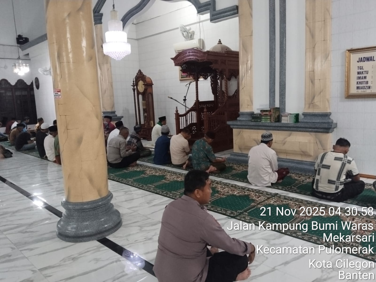Cilegon – Personil Kskp Merak Polres Cilegon Polda Banten menggelar kegiatan Pembinaan Rohani dengan shalat subuh keliling di Masjid Yang ada Di Daerah hukum Polsek Kp Merak Polres Cilegon Polda Banten, Jumat (21/11/2025).