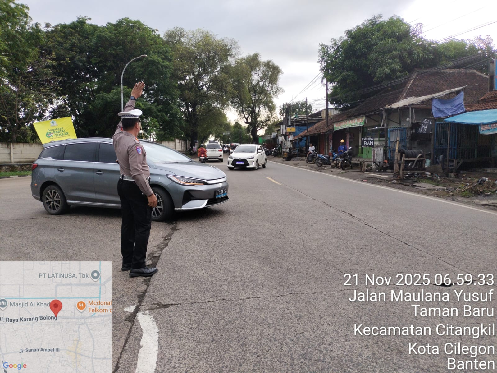 Cilegon - Pelayanan Prima Kepolisian Kepada Warga Masyarakat dan Guna menciptakan situasi lalu lintas yang aman, tertib dan lancar, Personel Unit Lantas Polsek Ciwandan Polres Cilegon Polda Banten secara rutin melaksanakan pengaturan lalu lintas, Jum'at (21/11/2025).