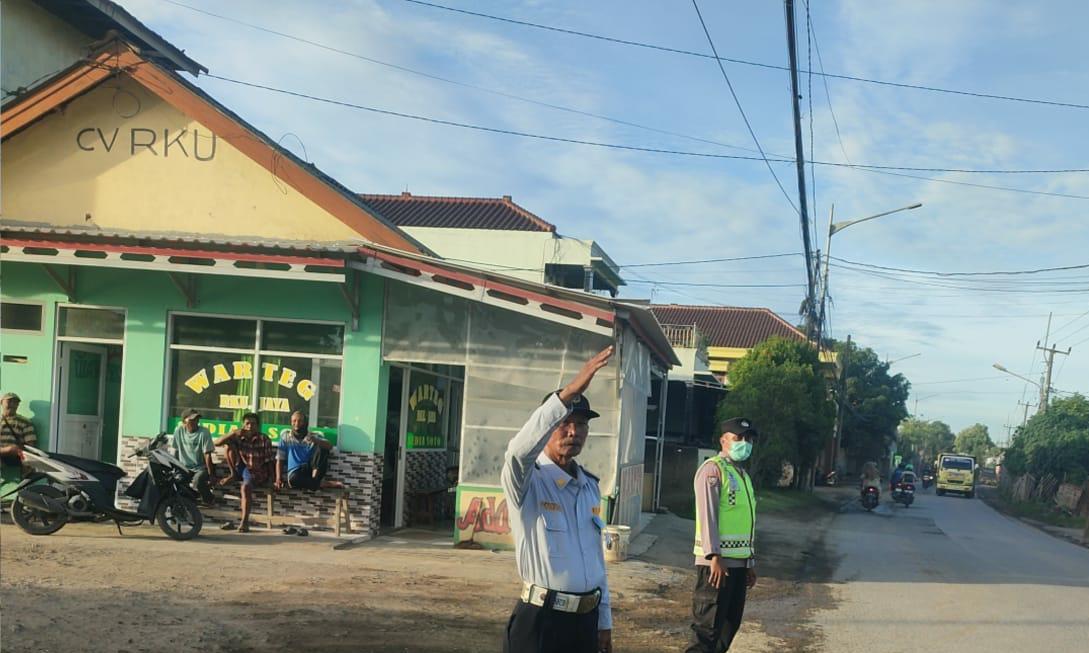 Personel Polsek Bojonegara dan Dishub Bantu Lancarkan Lalin Di Jalan Raya PT RKU Bojonegara