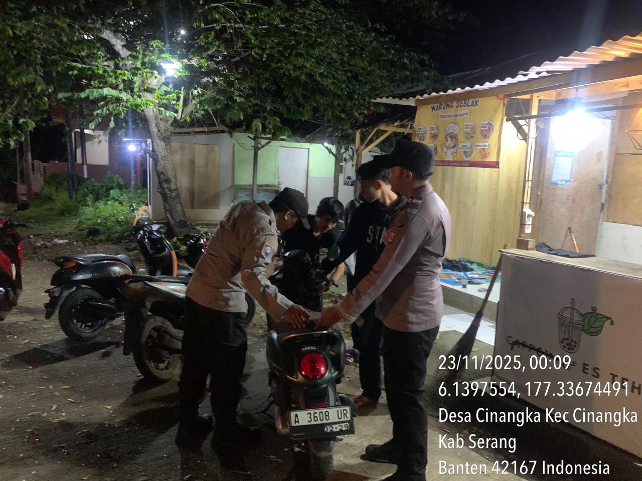 *Polres Cilegon* – Dalam Rangka Pencegahan Kejahatan Jalanan dan Memelihara situasi keamanan dan menjaga serta memberikan rasa aman dan nyaman di masyarakat,Salah satu upaya untuk mewujudkan hal tersebut sebagaimana yang dilakukan oleh Personil Polsek Cinangka Polres Cilegon Polda Banten melaksanakan giat patroli blue light malam hari hingga menjelang pagi, Minggu (23/11/2025).