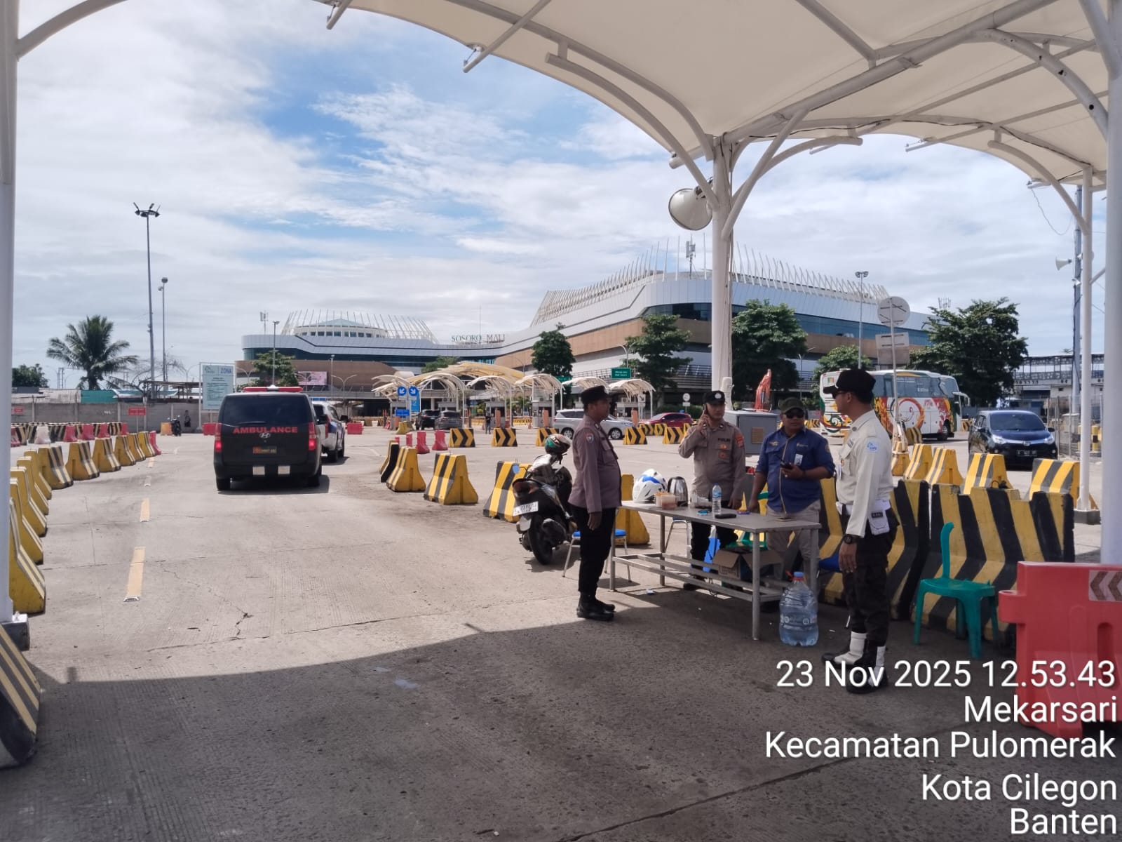 Cilegon - Personel Polsek Kskp Merak Polres Cilegon Polda Banten melaksanakan sambang dan patroli kawasan pelabuhan merak dalam rangka menjaga Harkamtibmas di Kawasan Pelabuhan Merak, Minggu (23/11/2025).