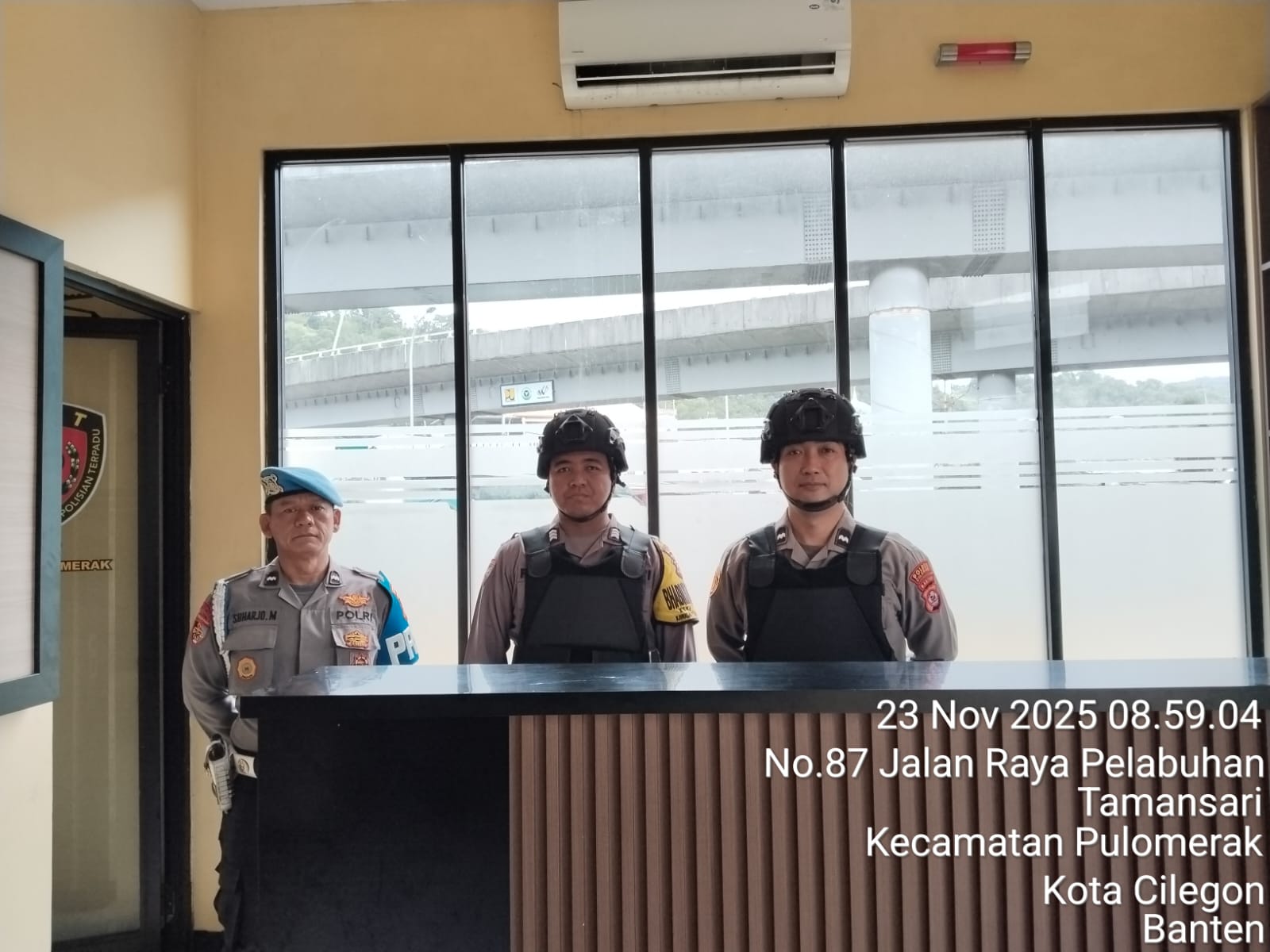 Cilegon - Personel piket jaga Polsek Kskp Merak Polres Cilgon Polda Banten melaksanakan siaga 1 Polsek pelaksanaan Sispam Mako oleh piket siaga dipimpin oleh Kspk Polsek Kskpy Merak Polres Cilegon Polda Banten, Minggu (23/11/2025).