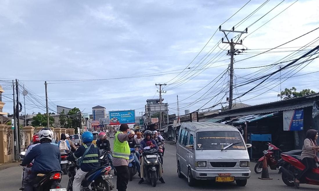 Polsek Anyar Mengurai Kendaraan dengan Pengaturan Lalu Lintas