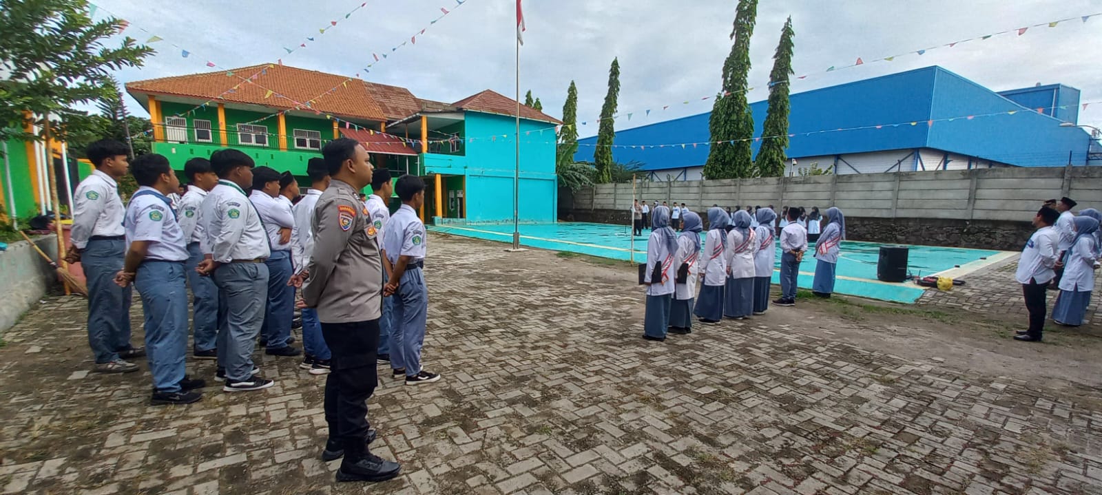 Cilegon – Bhabinkamtibmas Polsek Ciwandan Dampingi Kasat Binmas Polres Cilegon Polda Banten IPTU Muhyidin Pimpin Upacara Dan Menyambangi MTS & MA Dikelurahan Tegalratu Kecamatan Ciwandan, Menyampaikan Pesan-pesan Kamtibmas Dan Memberikan Imbauan, Senin (24/11/2025).
