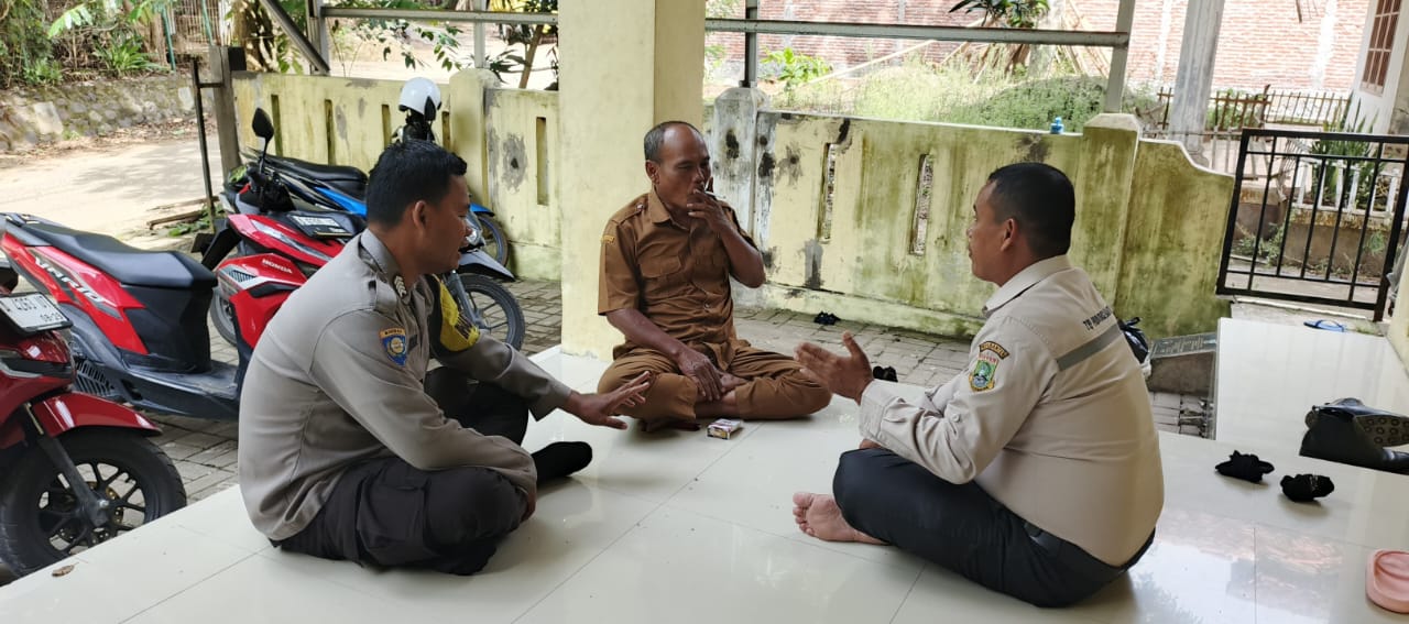 Bhabinkamtibmas Polsek Anyar Polres Cilegon Polda Banten Bripka Asep melaksanakan Sambang dialogis dengan Sekdes Ds. Bandulu Kec. Anyar dan Pendamping Desa dalam rangka menjaga di Desa Binaannya sebagai bentuk mendukung Program Quick Wins Presisi Polri, Selasa (25/11).