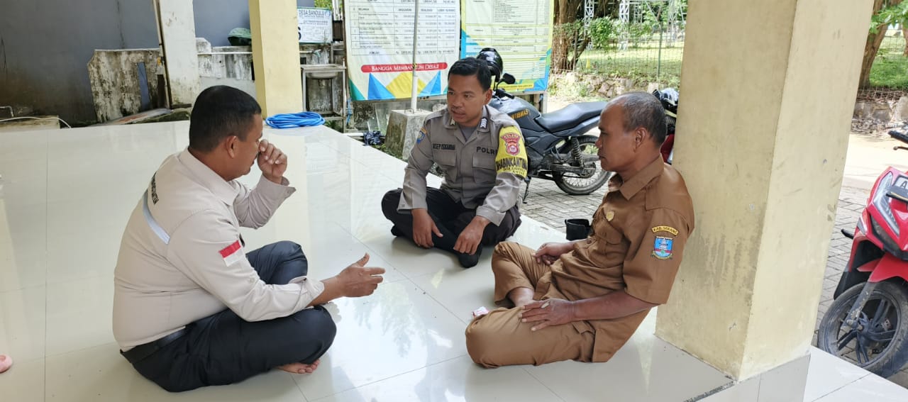 Cilegon -  Bhabinkamtibmas Polsek Anyar Polres Cilegon Polda Banten Bripka Asep melaksanakan Sambang dialogis dengan Sekdes Ds. Bandulu Kec. Anyar dan Pendamping Desa dalam rangka menjaga di Desa Binaannya sebagai bentuk mendukung Program Quick Wins Presisi Polri, Selasa (25/11).
